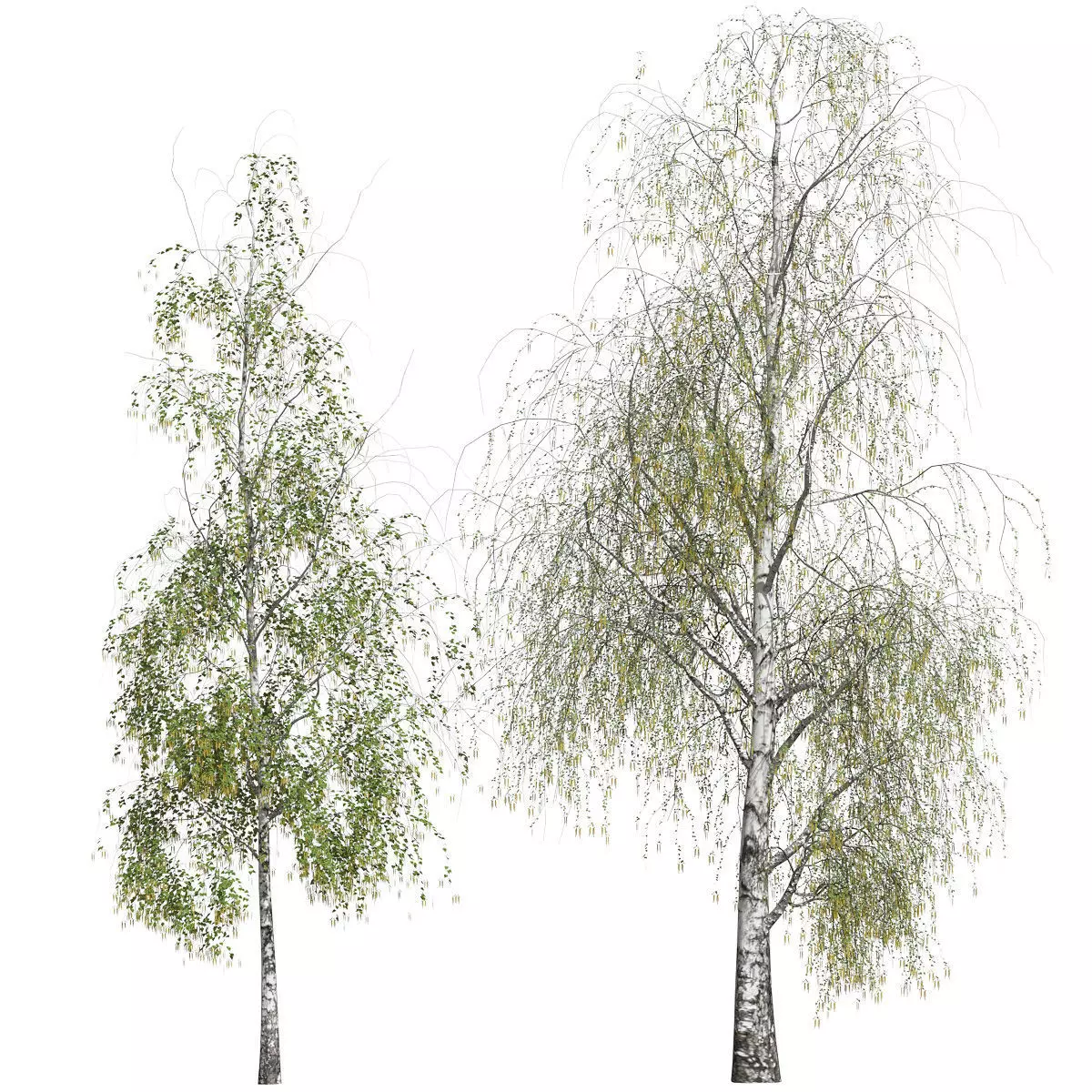 Flowering birch trees with buds. 2 models