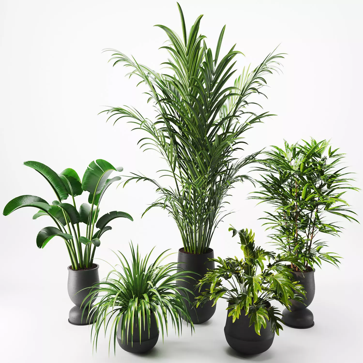 Hellothere is 5 diffrent interior plant in pot that i model in 3ds max and render with vray. Decorative Plants with ceramic pots for interior and exterior designs and decors. u can use it in every scenes, interior exterior or landscapes.spider plant, Philodendron Selloum, Swiss cheese plant, rhapis excelsa, Bird of paradise, chamaedorea eleganshope you enjoy it. :)