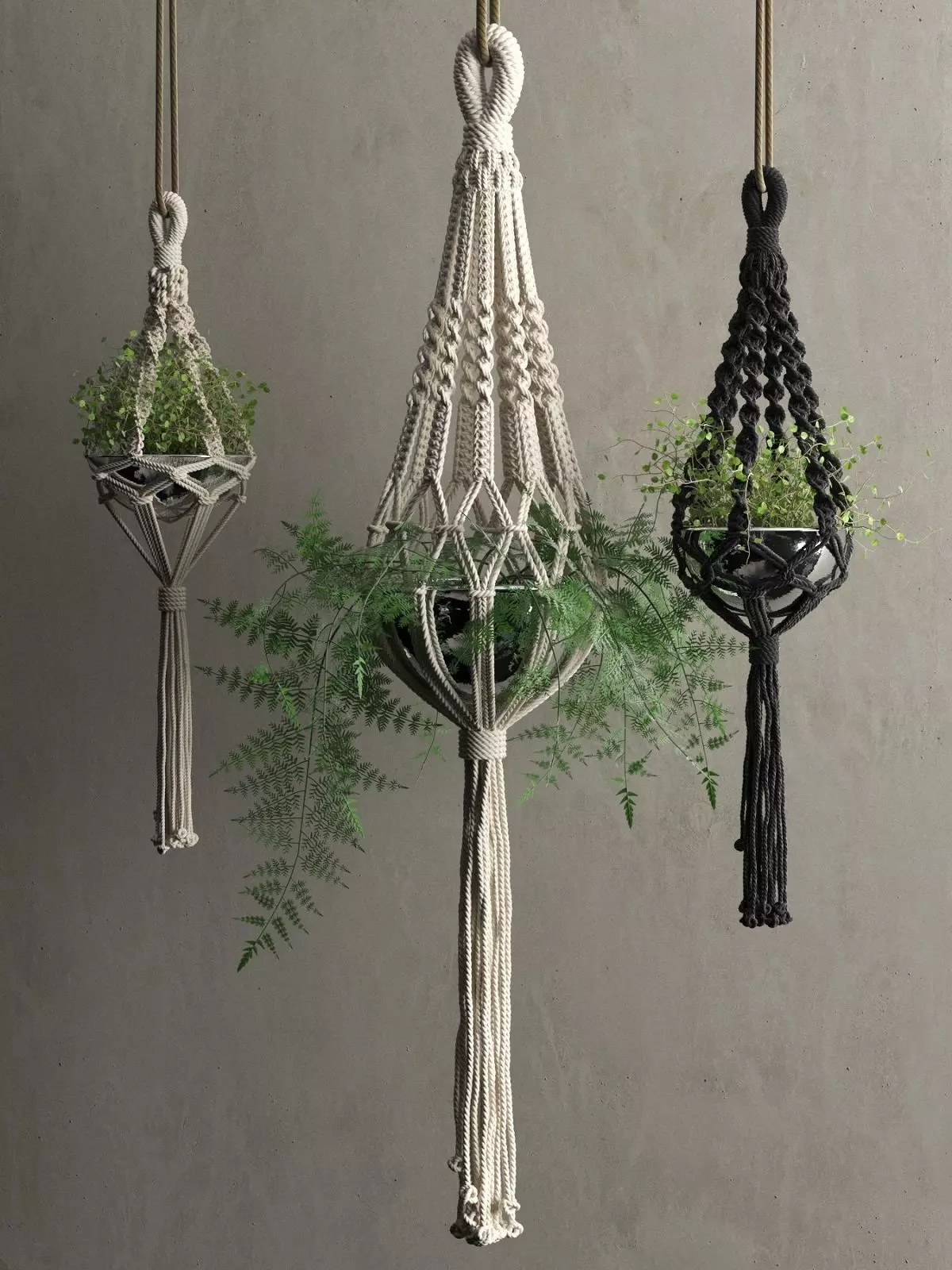 This 3d model Macrame Hanging Pots with Plants has a fully textured, detailed design that allows for close-up renders. Every model has been checked with the appropriate software.