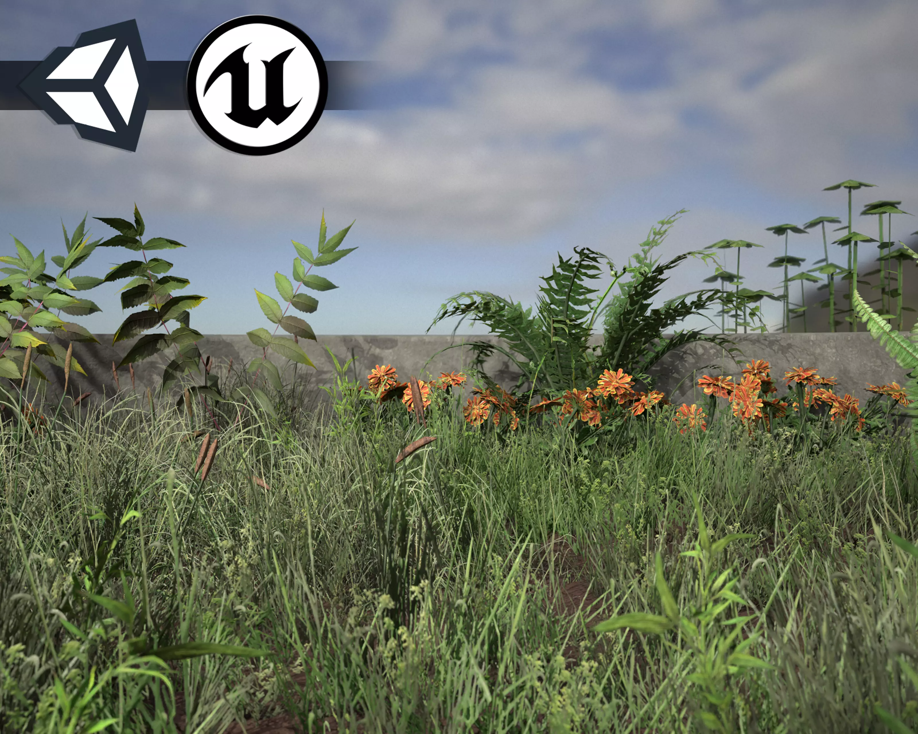 A huge pack of vegetation, ready for your games.It includes ferns, flowers, grasses and a few extra things.