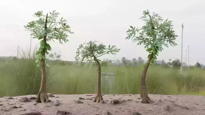 A highly detailed collection of Papaya Trees (Carica Papaya) featuring three distinct growth stages and forms. This asset is designed for artists who need realistic tropical vegetation for architectural visualization, outdoor environments, or tropical-themed games.