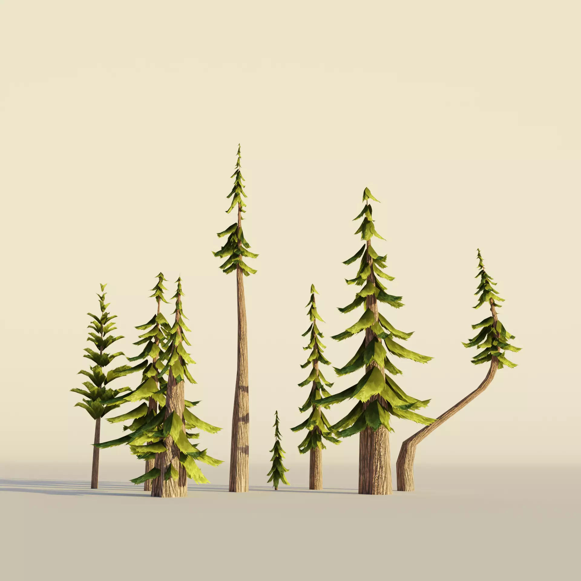 Pine tree set Cartoon Stylized Hand painted Low-poly 3D model