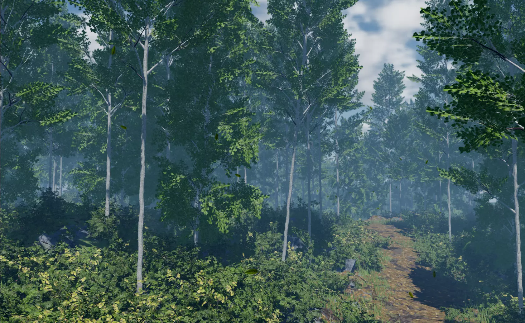 The Quaking aspen (Populus tremuloides) is a tall, deciduous tree known for its light bark and delicate round leaves that gently flutter in the breeze. Its clean shape and bright golden autumn color make it a great choice for natural, lively forest scenes.