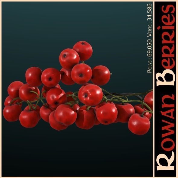 Description: Rowan Berries 3D model. The model can be used as decoration element for your projects. It includes 2 Defuse maps (with snow and without it)and also Metalness, Glossiness and Normal maps Please watch the demo video applied