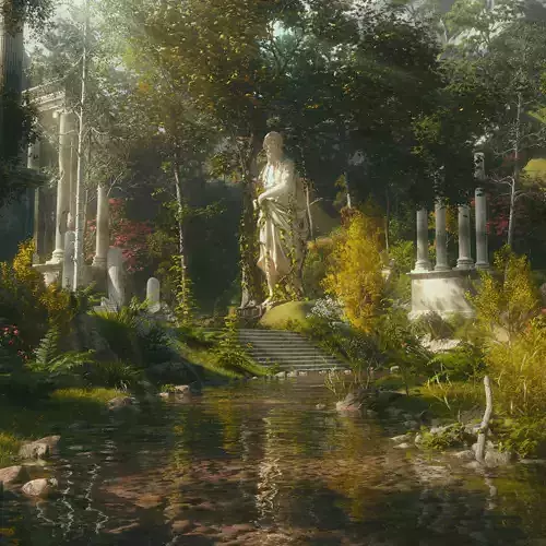 Designed as a static botanical sculpture, the asset emphasizes believable integration between stone, wood, roots, and vines. Careful attention has been given to material contrast, growth logic, and scale, making it suitable for high-quality visualization, cinematic stills, and portfolio presentation.