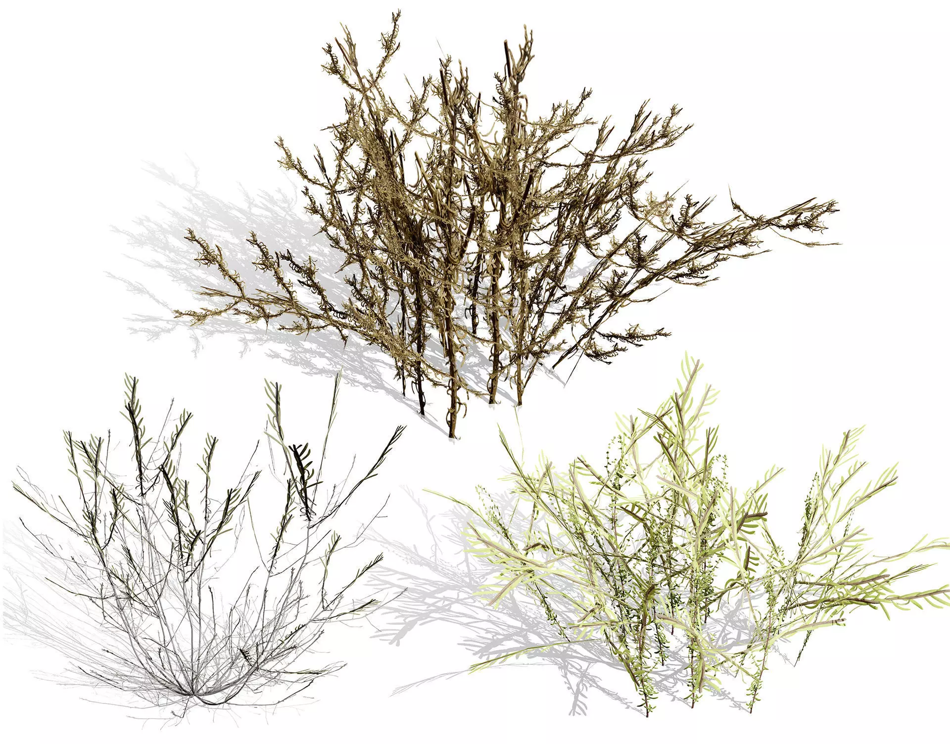 Elevate your desert landscapes and Middle Eastern architectural visualizations with this high-fidelity collection of Cornulaca arabica, locally known as Had. This pack features three distinct variations of this iconic desert shrub, capturing the plant's unique, spiny geometry and intricate branching structure. Whether you are building a vast game environment or a detailed garden render, these models provide the realism needed to sell the scene.