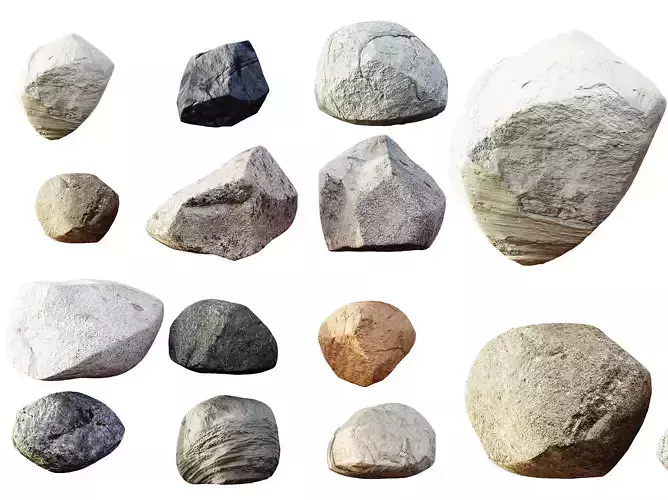 This realistic 3D model set features a collection of natural rocks and stones, each carefully crafted to capture authentic textures, irregular shapes, and geological detail. With a variety of tones ranging from light gray and beige to deep black and earthy brown, these stones bring natural diversity and realism to any architectural or landscape visualization. Perfect for creating cliffs, garden accents, or outdoor environments with true-to-life materials.