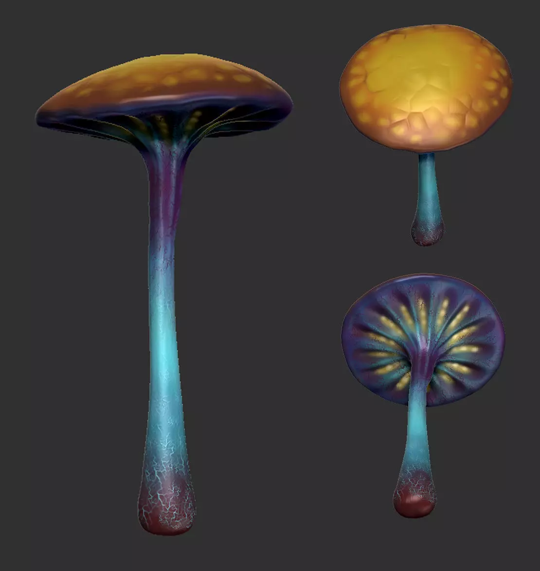 hand painted mushroom for fantasy game, add 2 variety of geometry, one low poly and one middle poly :))