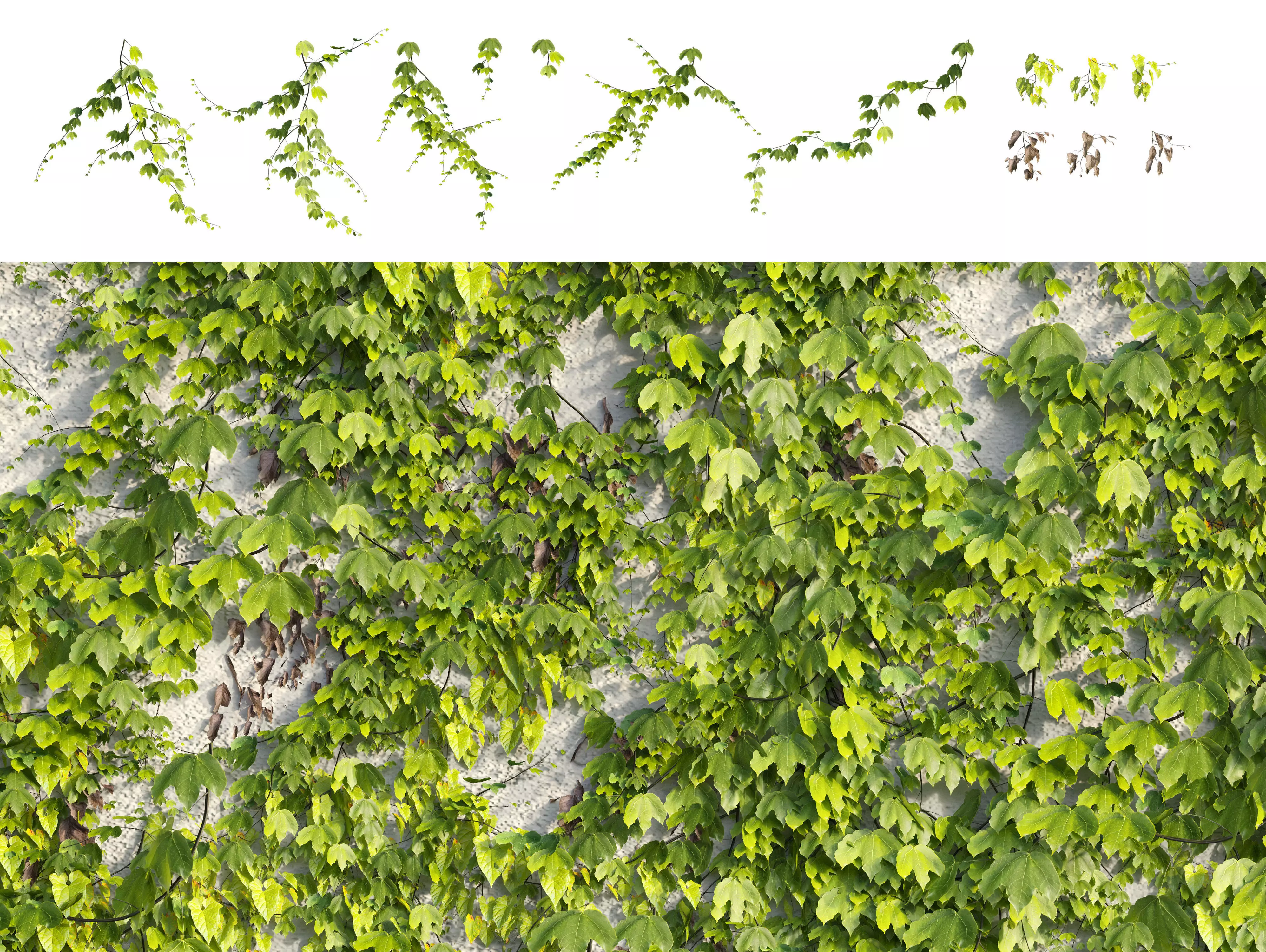 • FBX and v-ray file does not contain scattered scene, just the main plants and wall.