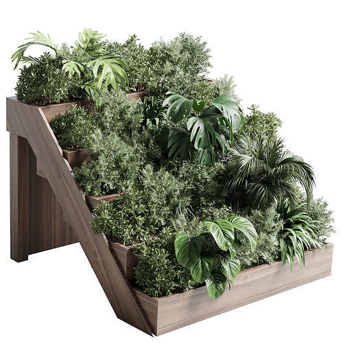 Collection outdoor plant stairs wooden vase pot fern bush Low-poly 3D model