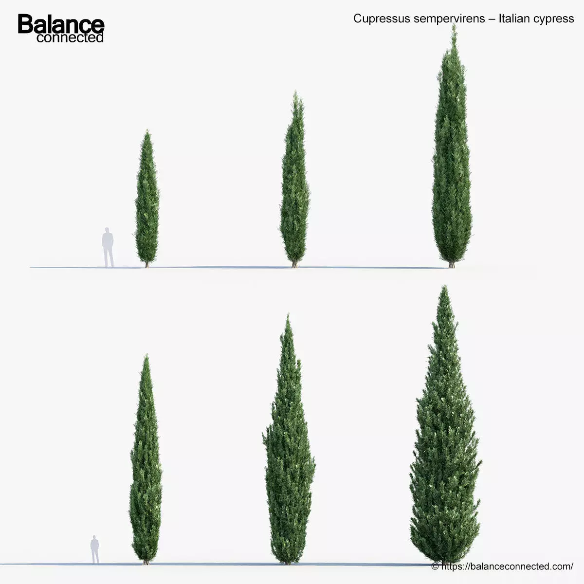 This product Cupressus sempervirens – Italian cypress includes 6 unique 3D model variations with different heights, ages and forms of the species available for your production needs. We are sure our “ready to import and render” products will help you with production efficiencies and effectively.