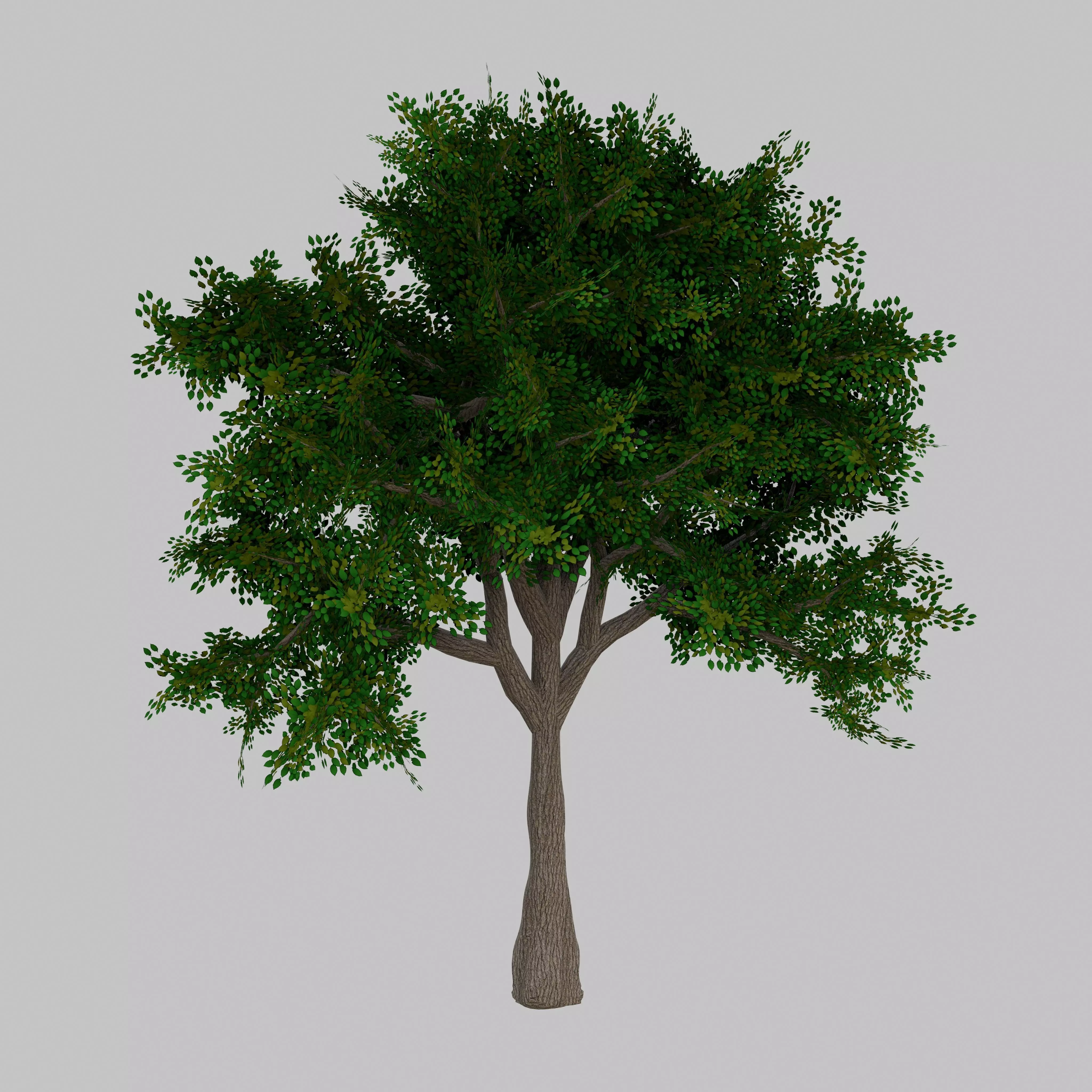 Dense Green Leafy Tree 3D Model with Natural Trunk