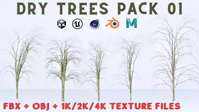 This is the first of the list Dry Trees Pack 01 more packs like this will be added after this one. These trees can be really helpful in realistic environments and adding some more contrast to your environment. Best suitable for abandoned environments, deserts and dry areas.