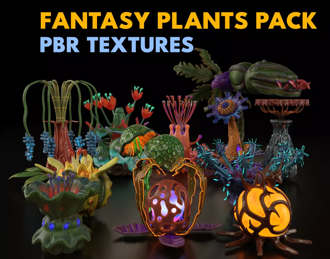 Fantasy plants pack Low-poly 3D model