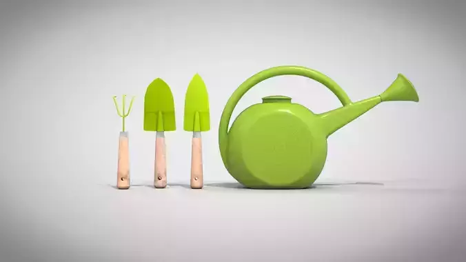Garden tools set with wide trowel, transplanter, cultivator and watering can, lid and spout.Made in Cinema 4D R19 in polyline mesh and exported to the files; 3ds, fbx, stl, obj and blend. The textures are 2k uv mapping.I hope you like it and that it is useful in your work.Thanks for visiting, renatodallePs.: The sizes of the objects are original to reality.