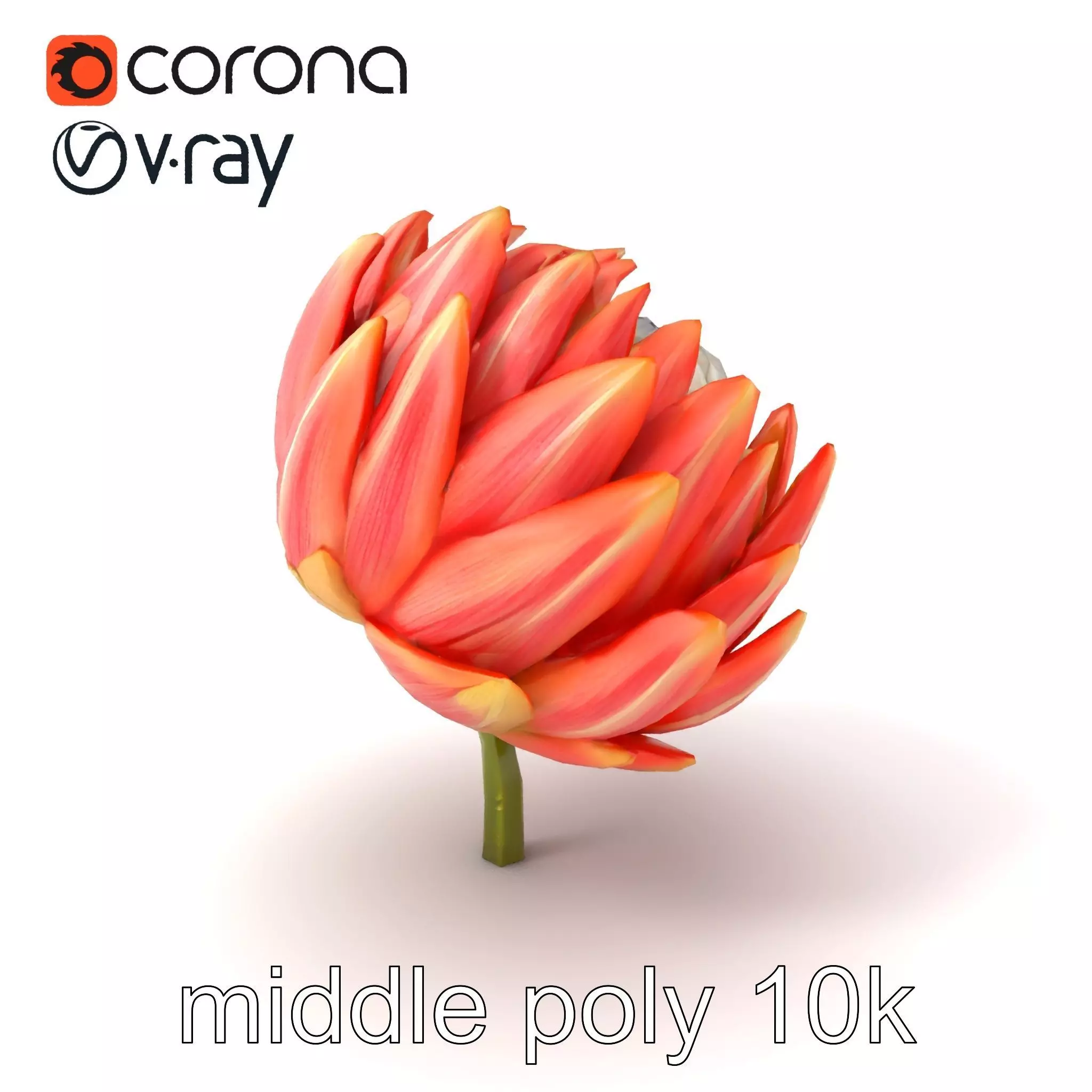 Each model has 3 levels of detail: low-poly, middle-poly, and high-poly, which allows for the use of this model in production rendering (such as 3ds max, Maya, Cinema4d, Blender, Vray/Corona/Cycles and all other), game engines (Unity and Unreal compatible), and interactive presentations, providing a choice of detail based on the LOD System principle. This model is perfect for use in botanical visualizations, floral design applications, and nature simulations. The model's textures are PBR, Diffuse, NormalMap, and reflection/roughness/metallic, which are suitable for any modern rendering engine. All models are accurately unwrapped and have no overlapping UV. All textures are 4096*4096 in size. If you like this model, please like and leave a comment!