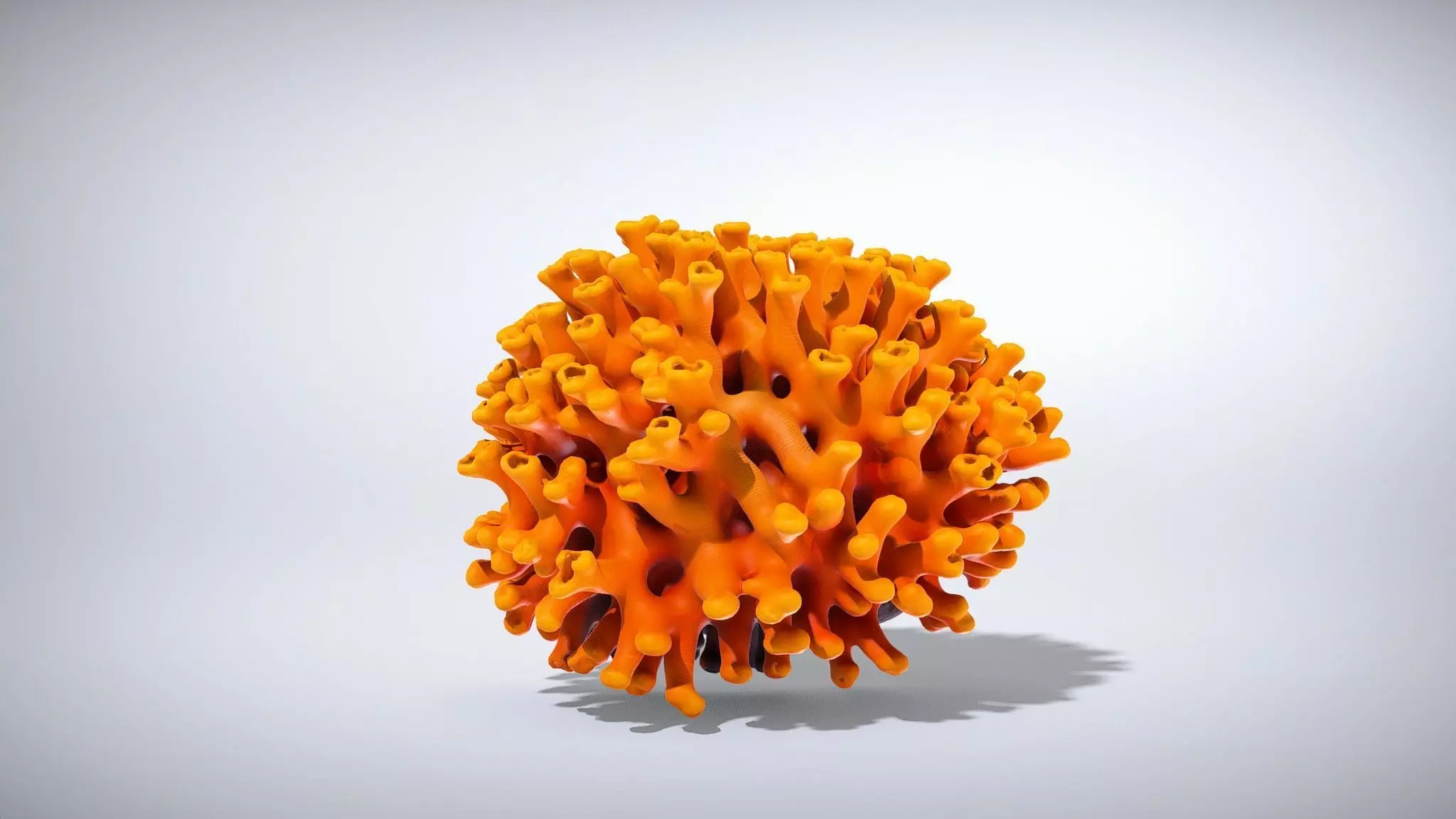 This detailed 3D model represents a colony of Tubastraea (sun coral) in a striking golden/yellow color morph. Each polyp is intricately designed with translucent yellow tentacles and an orange base, perfect for realistic marine environments. The model is suitable for production rendering, game engines, and interactive presentations, offering various levels of detail for diverse applications.