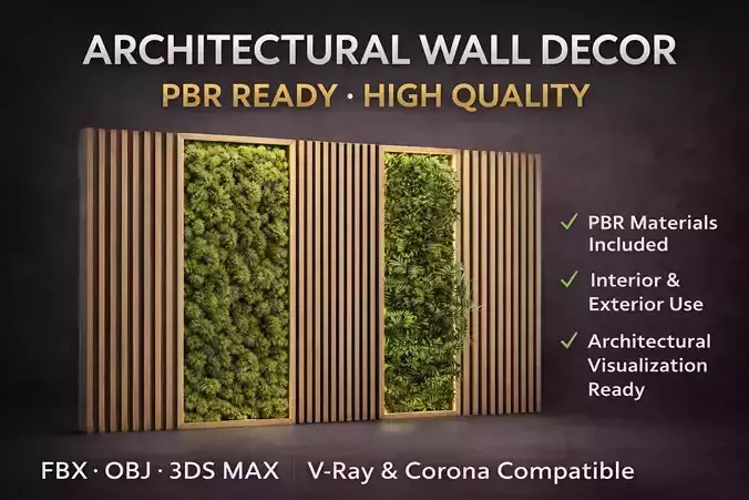 A clean, modern, and professional architectural wall decor asset designed to elevate interior visualizations with natural textures and contemporary aesthetics. Perfect for architects, designers, and 3D artists seeking high-quality, ready-to-use assets.