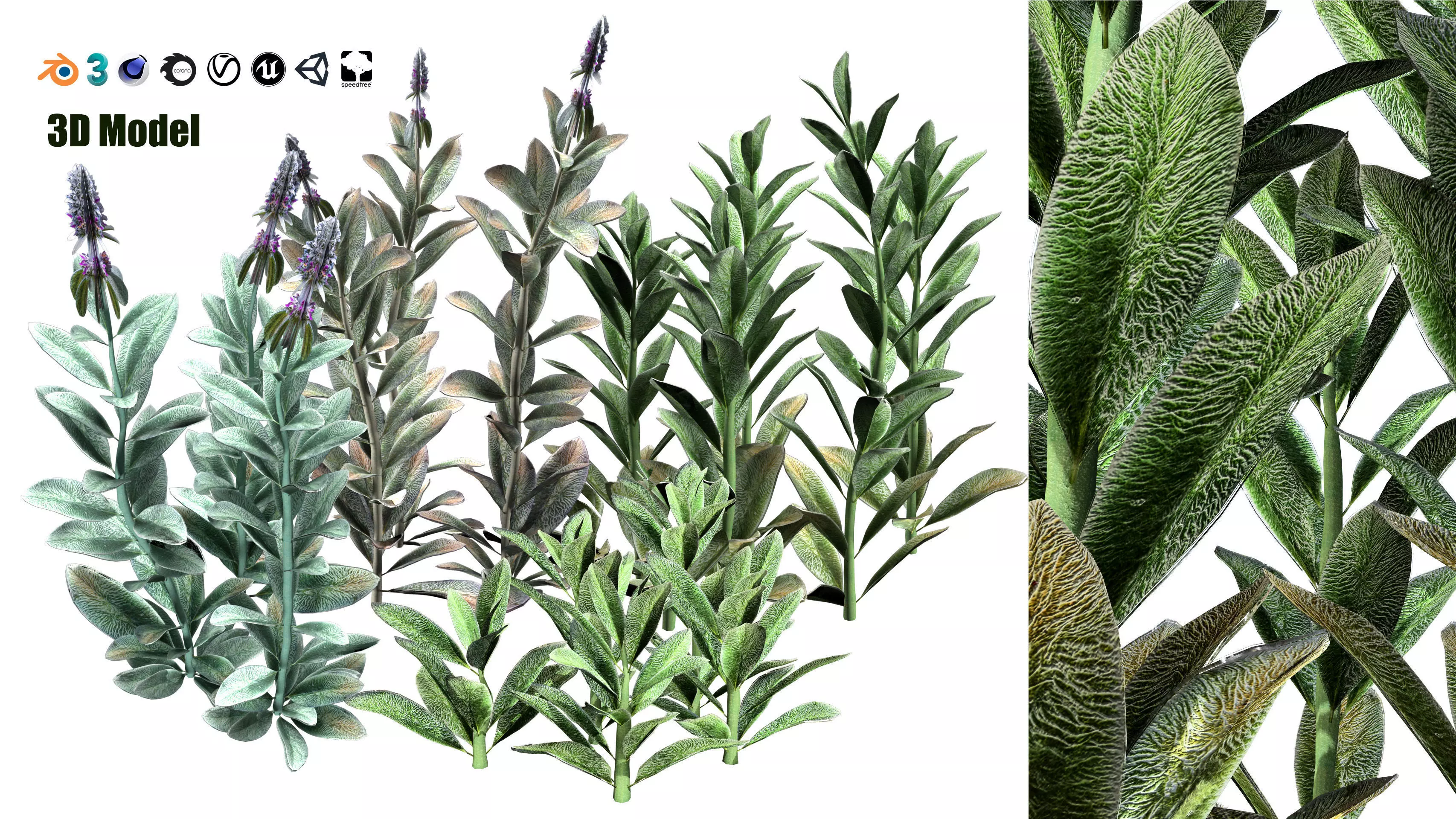 • High-quality and optimized low poly 3D models of Lamb's Ear plants