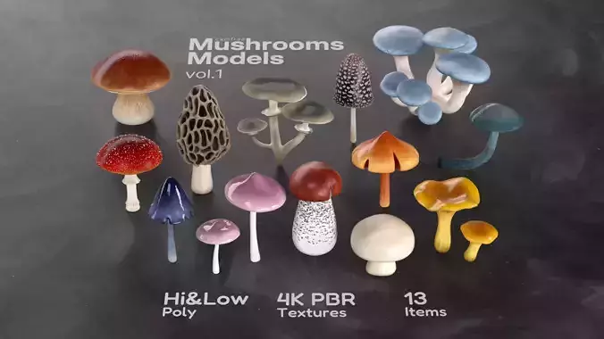 High-quality 3D models of various mushrooms (both real and fictional) for your project. Optimized for subdivision, available in both low-poly and high-poly versions.