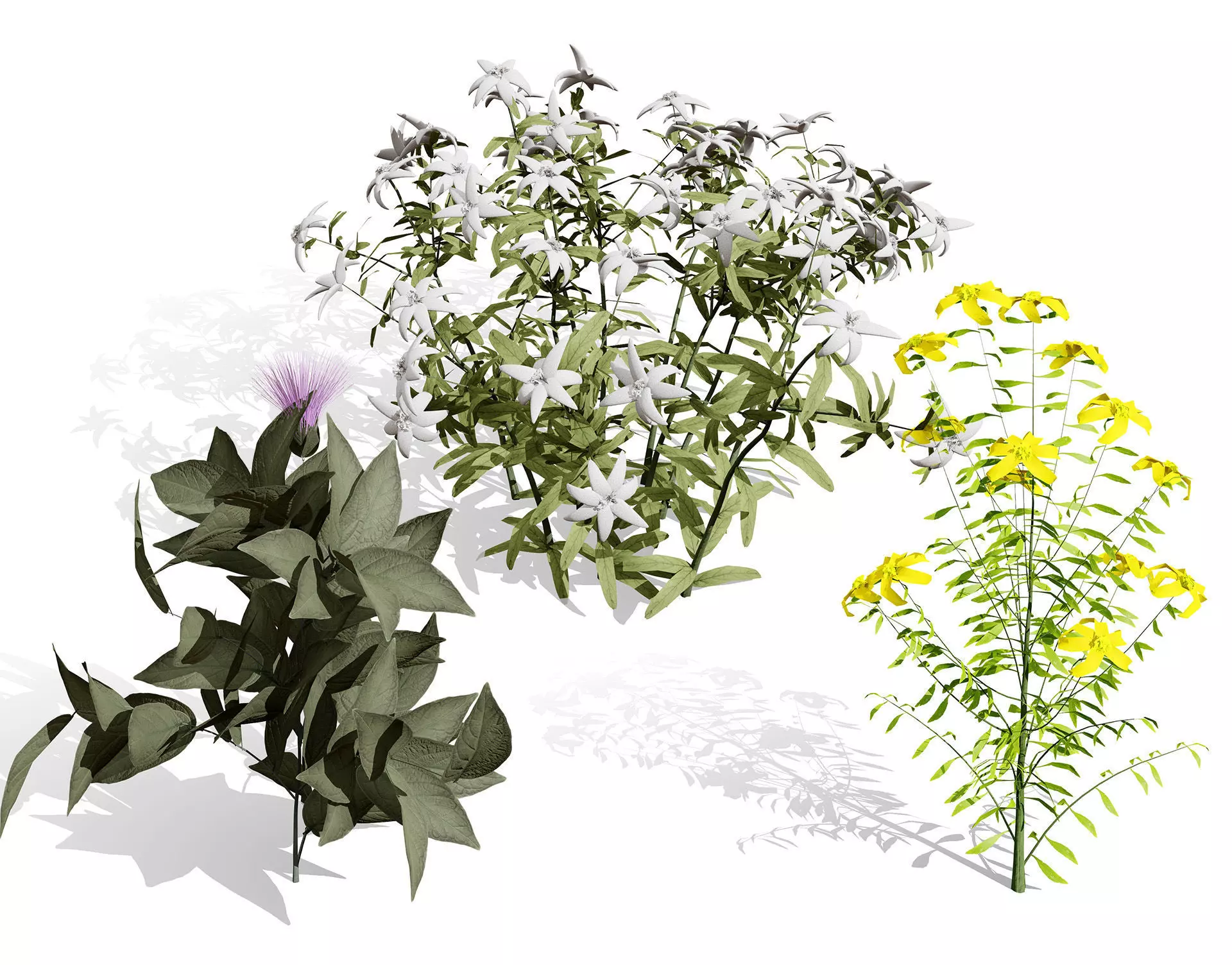 This collection features three distinct, high-fidelity 3D plant models representing the rugged beauty of the Saudi Arabian and Yemeni mountain regions. Meticulously crafted to capture the specific botanical structures of arid-adapted flora, these assets are perfect for architectural visualization, game environments, and ecological simulations focusing on the Middle East / West Asia biomes.