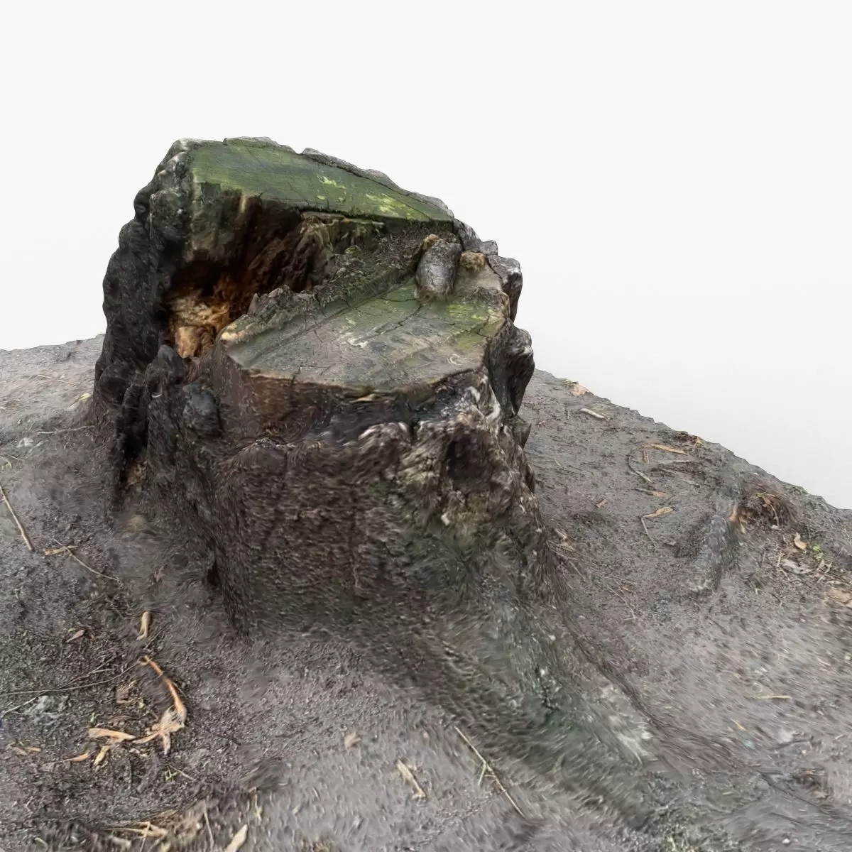 Scanned Stump by photogrammetry. 3d scan object. The Stump was produced using photogrammetry based on a real Stump and its texture. There are three versions: High Poly, Low Poly with quads and Low Poly with triangles.