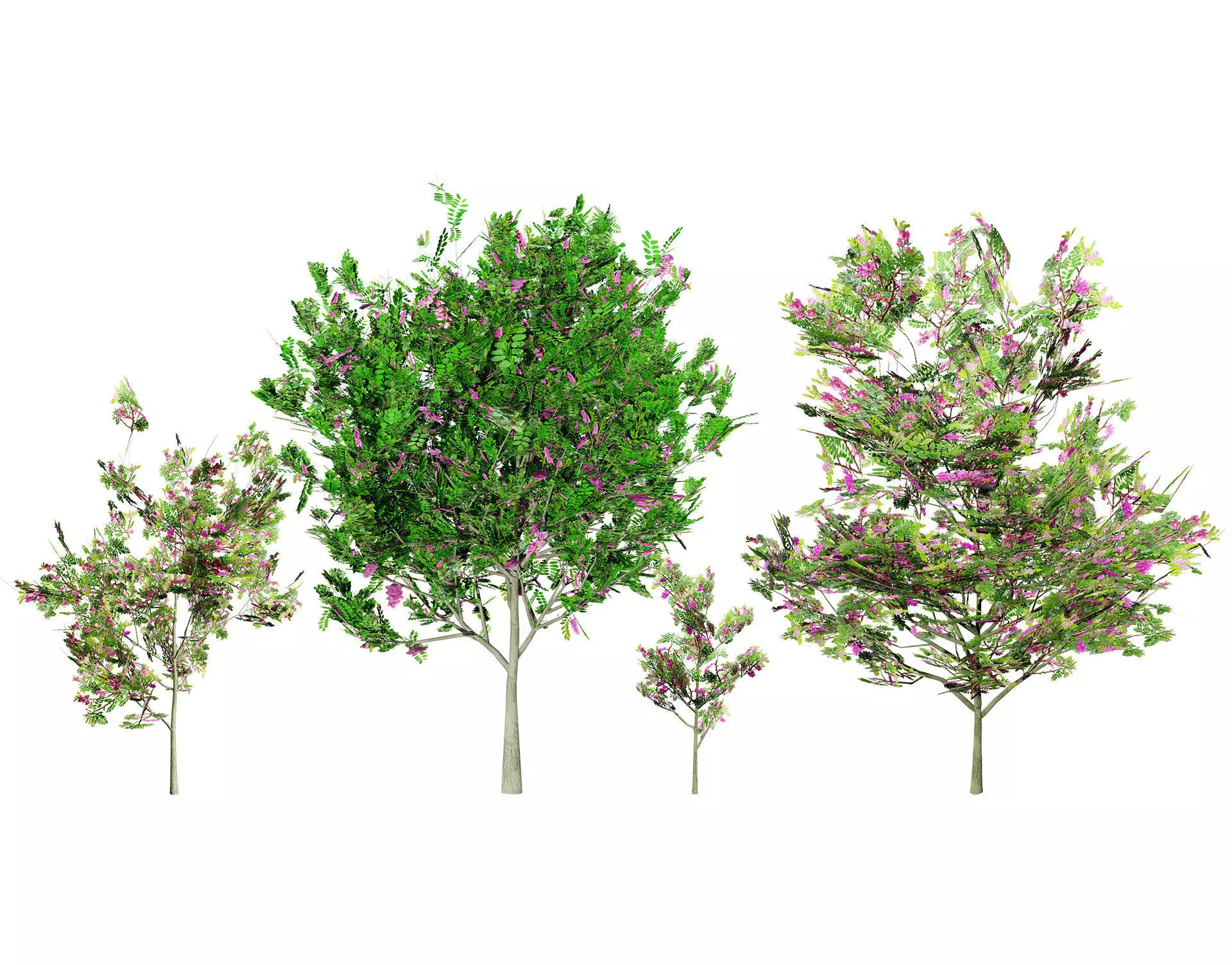 This high-quality 3D model features a Purple Robe Robinia tree in four growth stages, ranging from a young sapling to a mature tree. The model is highly detailed, with accurate textures and materials that capture the unique appearance of this beautiful tree. It's ideal for creating realistic and immersive environments in architectural visualizations, landscape design, and game development.