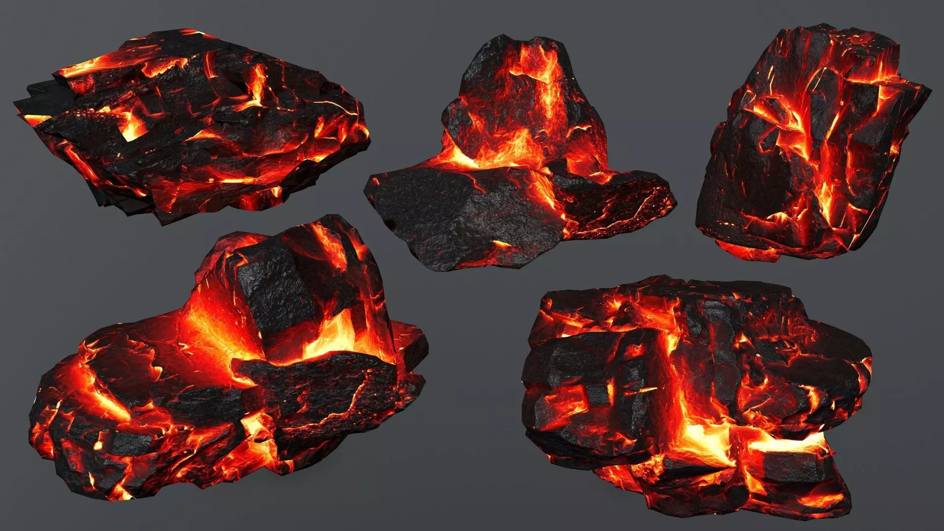 Rock set 4 piece of coal Low-poly 3D model
