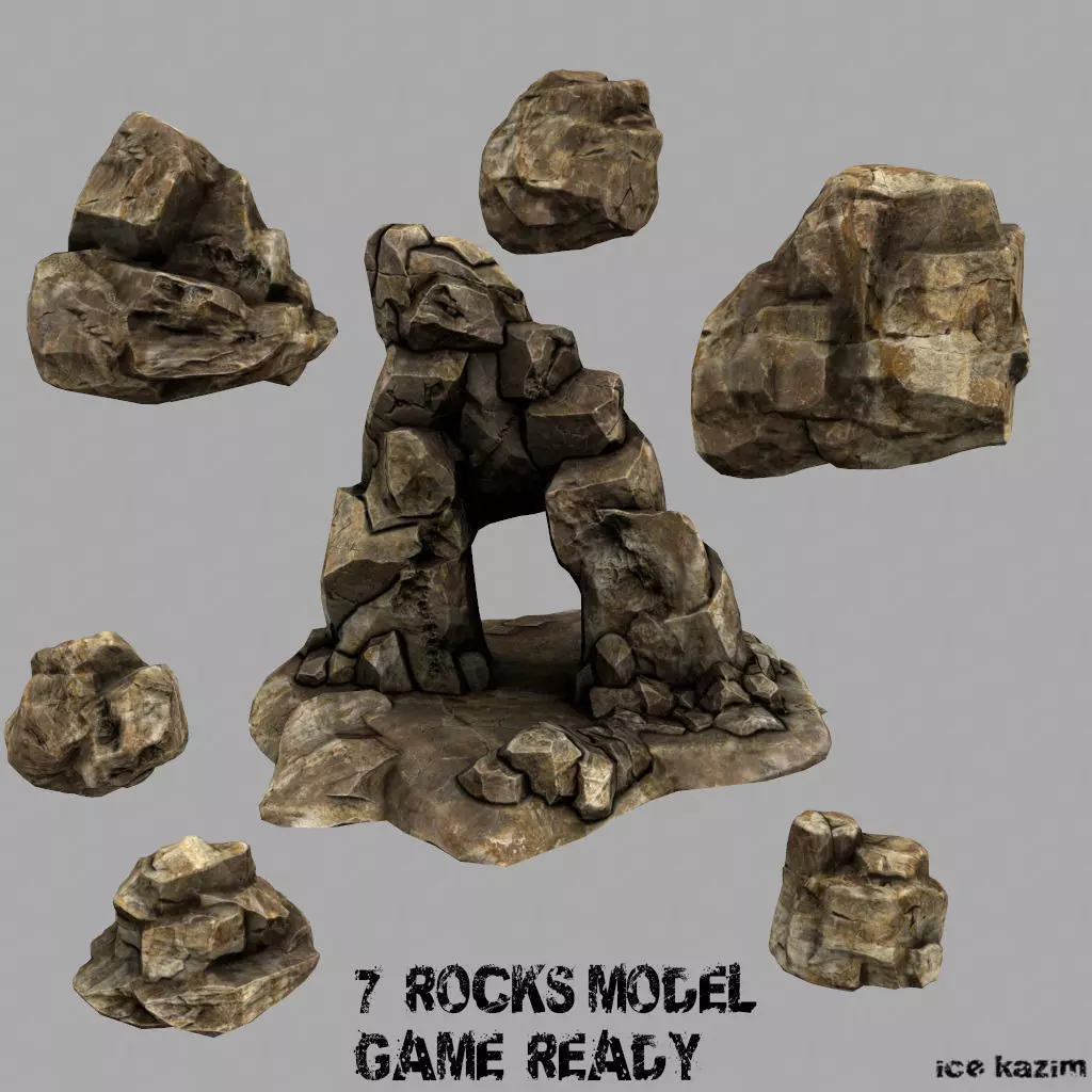 Rock_1....................1153 polygon. .............1155 vertices. Rock_2....................950 polygon. .............952 vertices. Rock_3....................1244 polygon. .............1246 vertices. Rock_4....................1027 polygon. .............1029 vertices. Rock_5....................1013 polygon. .............1015 vertices..Rock_6....................1055 polygon. .............1057 vertices..Rock_7....................1842 polygon. ............. 1865 vertices.2048 * 2048 texture.