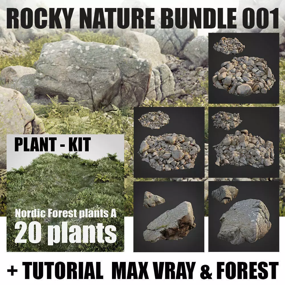 collection contains:nature_stone_023_all_filesnature_stone_024_all_filesnature_stone_025_all_filesnature_stone_026_all_filesnature_stone_032_all_filesnordic_forest_plants_a_all_filesscene with forest scatter and vray settingsmodels MAXmodels FBXmodels OBJTextures for all assets + groundtextures