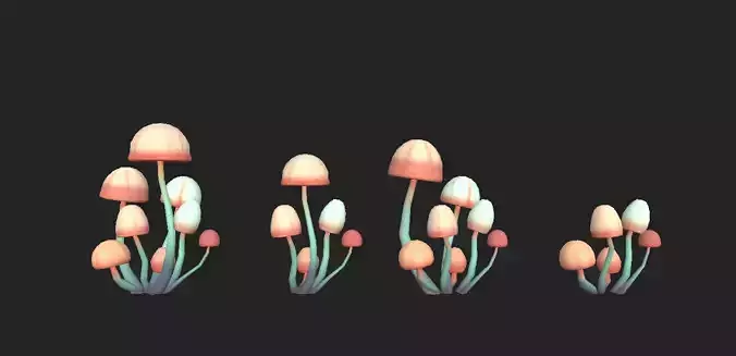 Stylized Mushrooms Game Ready 3D Model Low-poly 3D model