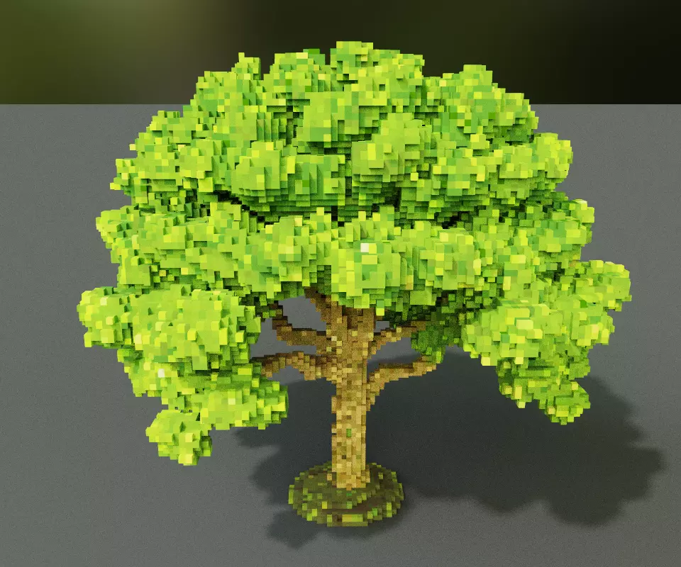 Key Features:Art Style: Professional voxel (volumetric pixel) art.Color Palette: A vibrant range of forest greens, lime accents, and organic wood tones.Geometry: Clean, block-based structure optimized for performance in stylized game engines.Atmosphere: Perfect for bright, whimsical, or cozy game worlds (similar to Minecraft, Roblox, or Cube World).Versatility: Ideal for use as a hero asset in a park, forest, or garden environment.