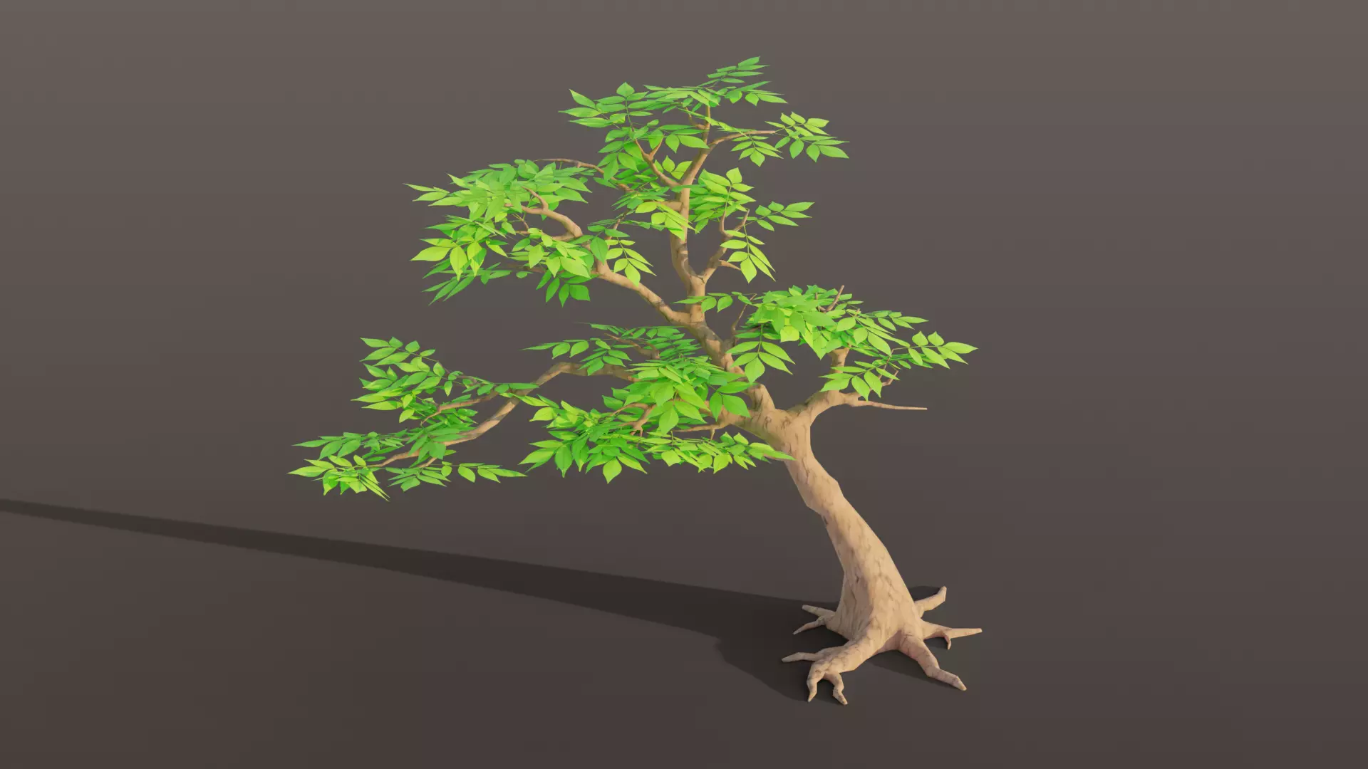 Toon tree modeled in Blender 5.0 and rendered with cycles.