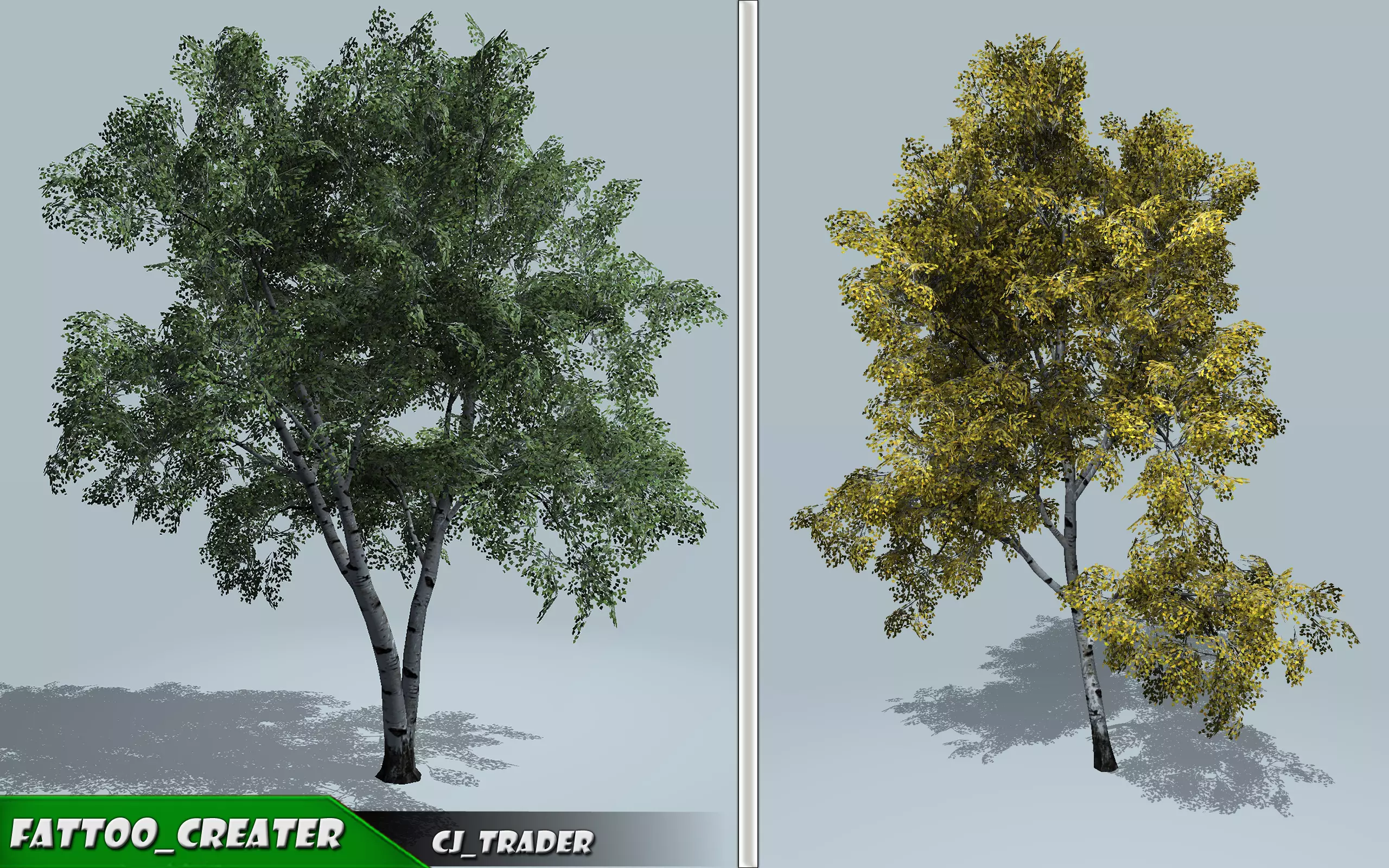 Features: - This Pack includes realistic European White Birch and European Silver Birch 3d models.Well arranged data by names and separate folders .All Meshes have a LOD.