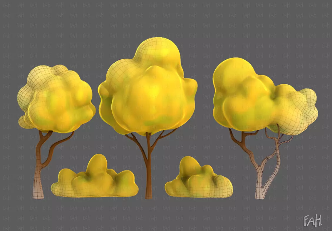 ** 5 Models **This is Trees Cartoon V31. It is cartoon tree for animation and game. Model clean topology based on quads and completely UVunwrapped. The Trees is pretty low polygon.