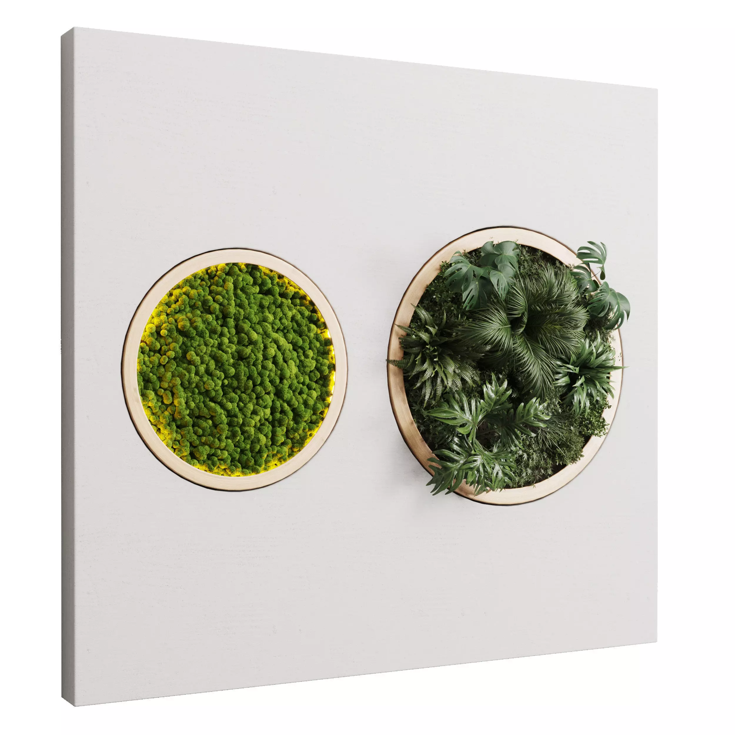 vertical garden circle and moss in wooden frame 32 3D model