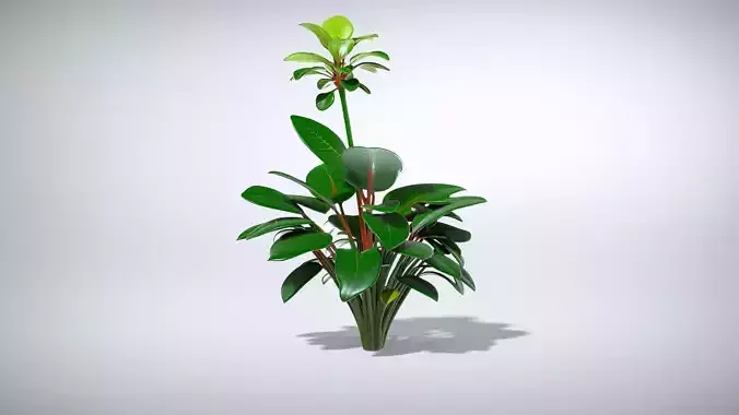 This rubber plant model features realistic dark green leaves with a glossy finish and a robust structure. Each leaf is intricately detailed, showcasing its natural texture and sheen. The model is suitable for various applications, including interior design visualizations, botanical illustrations, and educational purposes. Each model has 3 levels of detail with QUAD polygons: