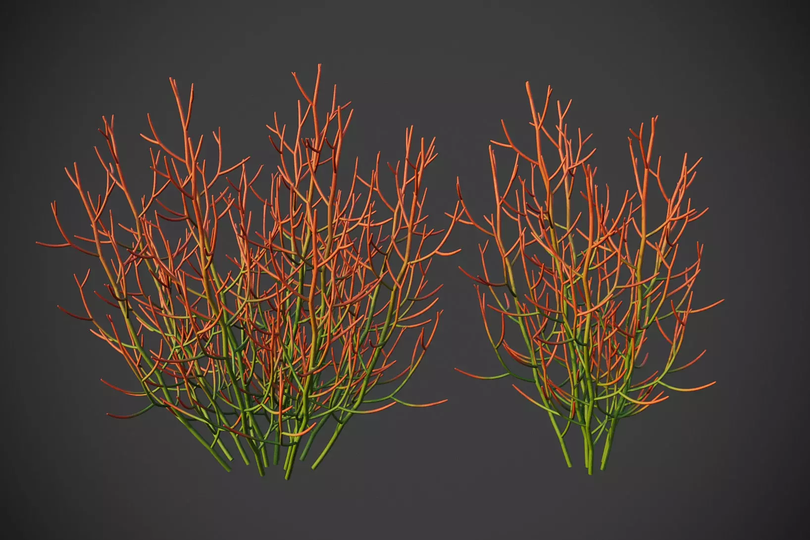 These plants are created by the very experienced modeler Konstantin Kim and sold exclusively by Xfrog.Kim (aka 3d Mentor) works in 3ds max GrowFX, and sets up shaders for Corona, VRay, and FStorm.ALL plants, for the first time EVER, have GrowFX (gfx) files included, and WIND, and all models and wind can be procedurally edited!Polycounts range from 100k to 600k. Download includes two models.