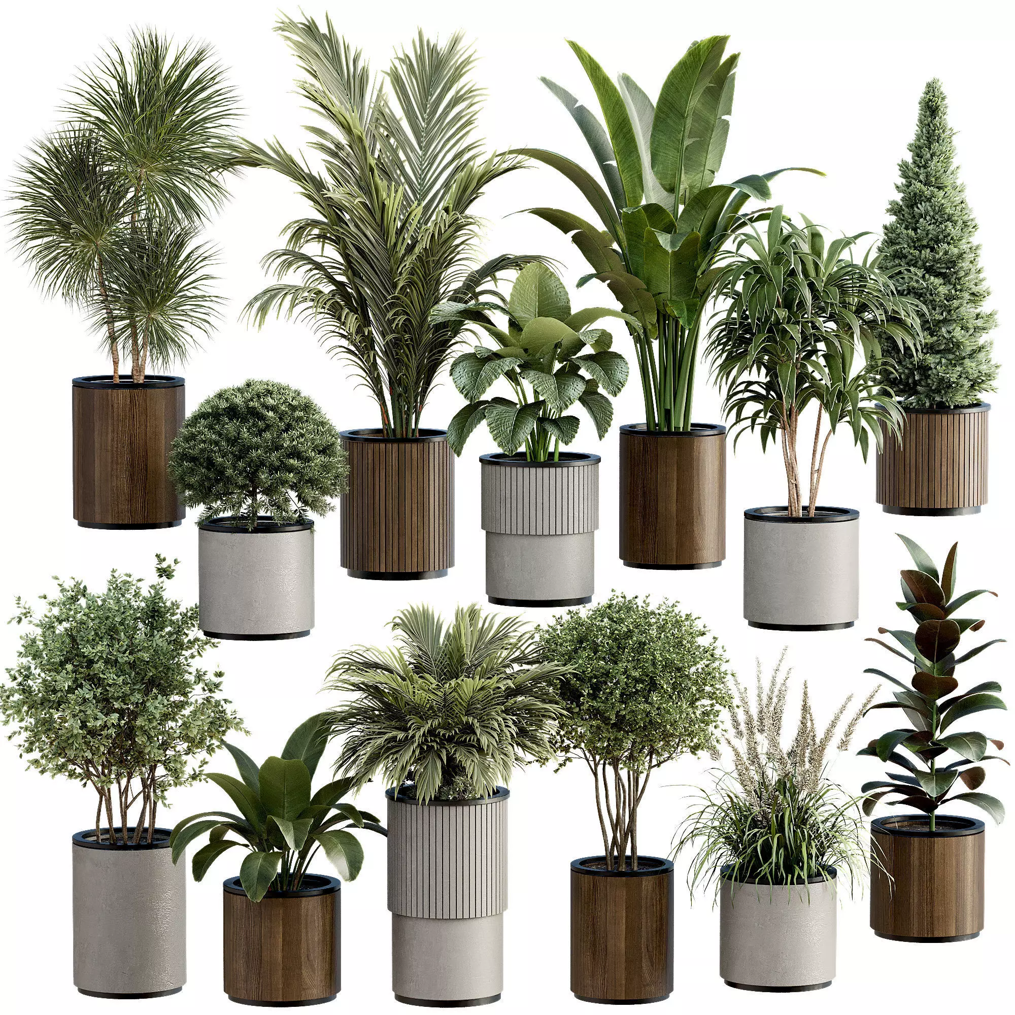Each plant is placed in a stylish, modern pot with varying designs and textures, giving you a natural yet elegant touch for any type of 3D environment.