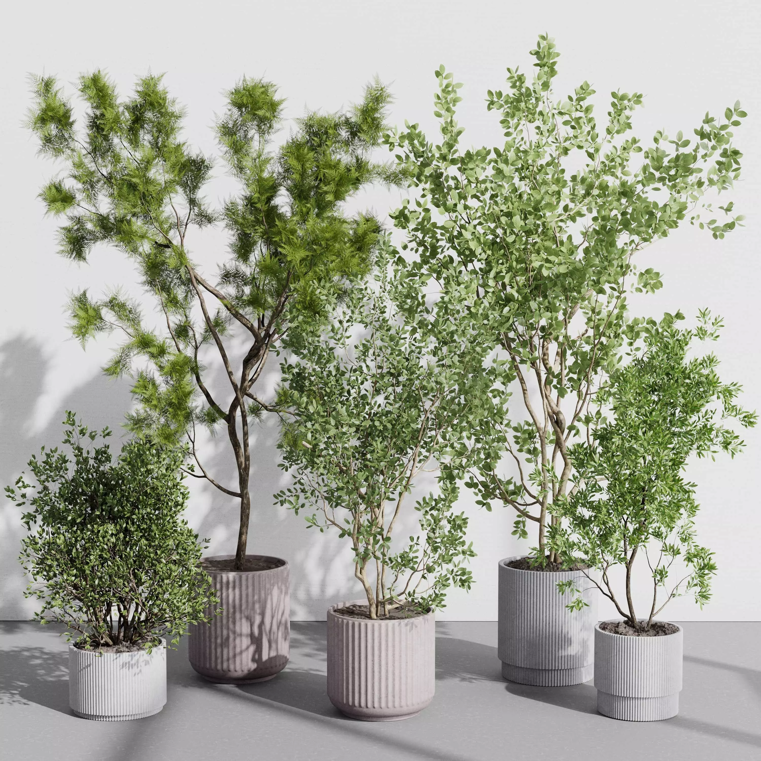 A Collection Trees in a concrete dirty vase - indoor plant 395