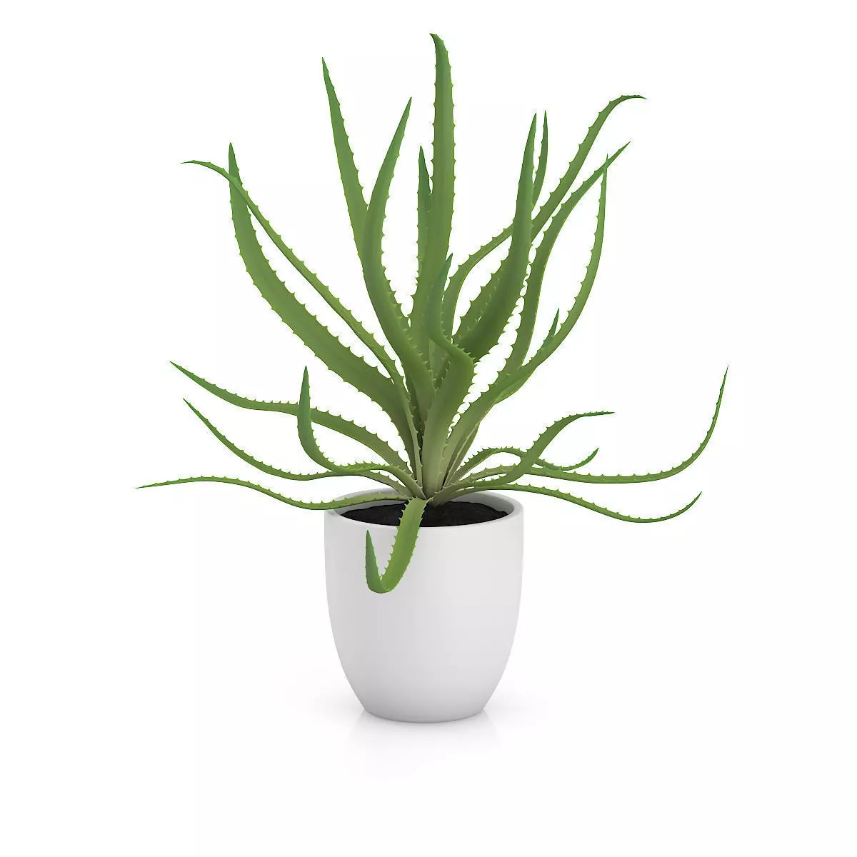 3D model of aloe in standard white pot. Compatible with 3ds max 2010 or higher and many others.