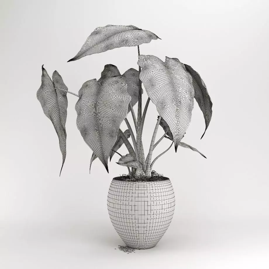 Alokaziya plant in concrete pot 3D model