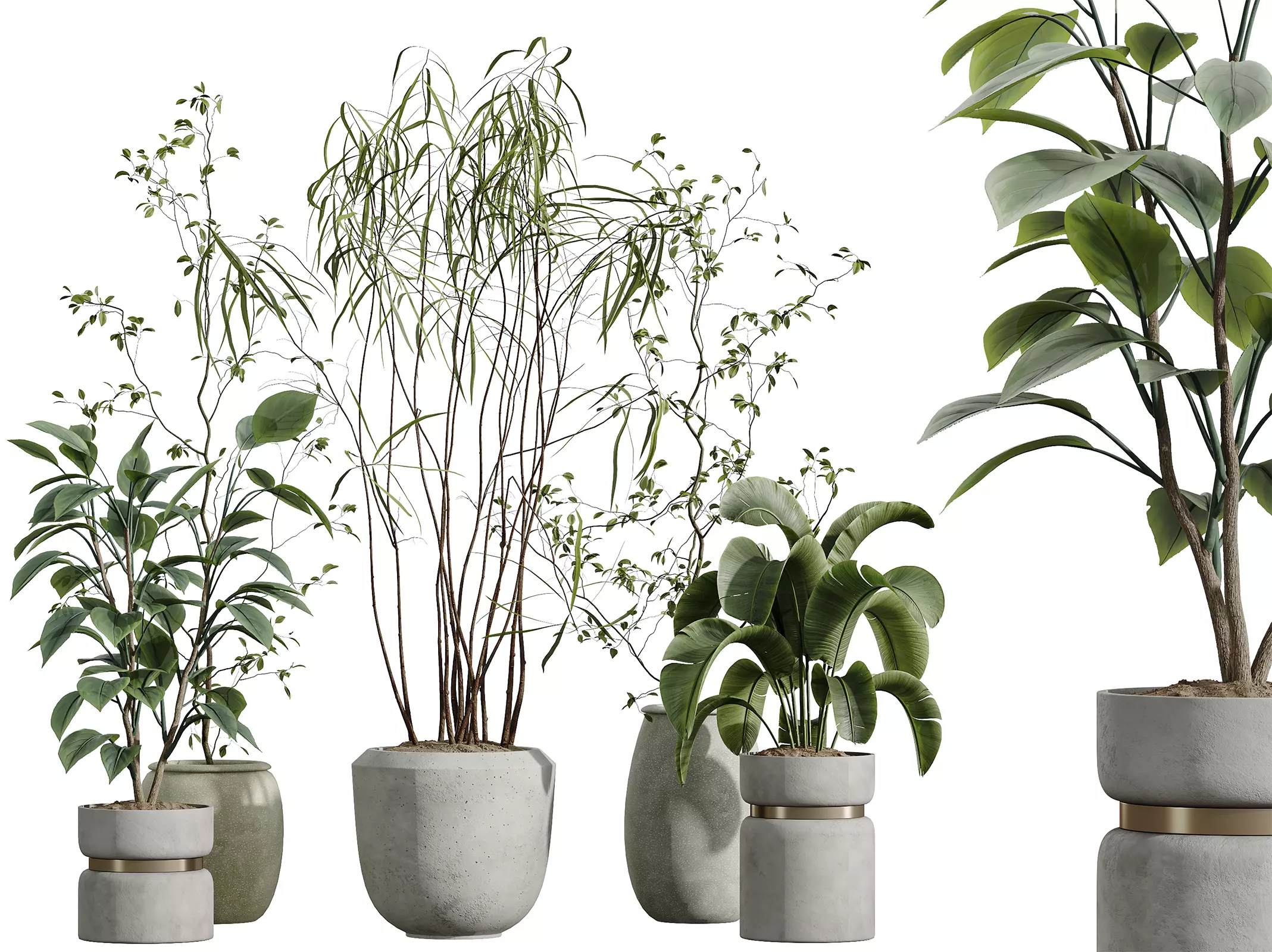 Each plant is modeled with a strong focus on clean silhouettes, natural growth patterns, and realistic leaf behavior, making the set ideal for contemporary interiors, Scandinavian and Japandi spaces, modern apartments, showrooms, offices, and high-end residential visualizations. The combination of refined foliage and minimalist planters delivers a timeless, design-driven look that works perfectly for both hero shots and full interior compositions.