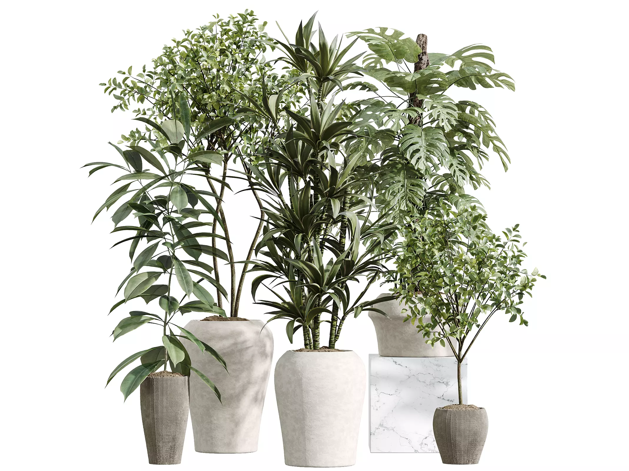 At the heart of this collection is the striking Dracaena Warneckii, with its vertical rhythm and rich variegated stripes, perfect for architectural interiors. The Monstera Deliciosa, with its iconic split leaves, injects bold tropic energy and visual drama into minimalist corners.