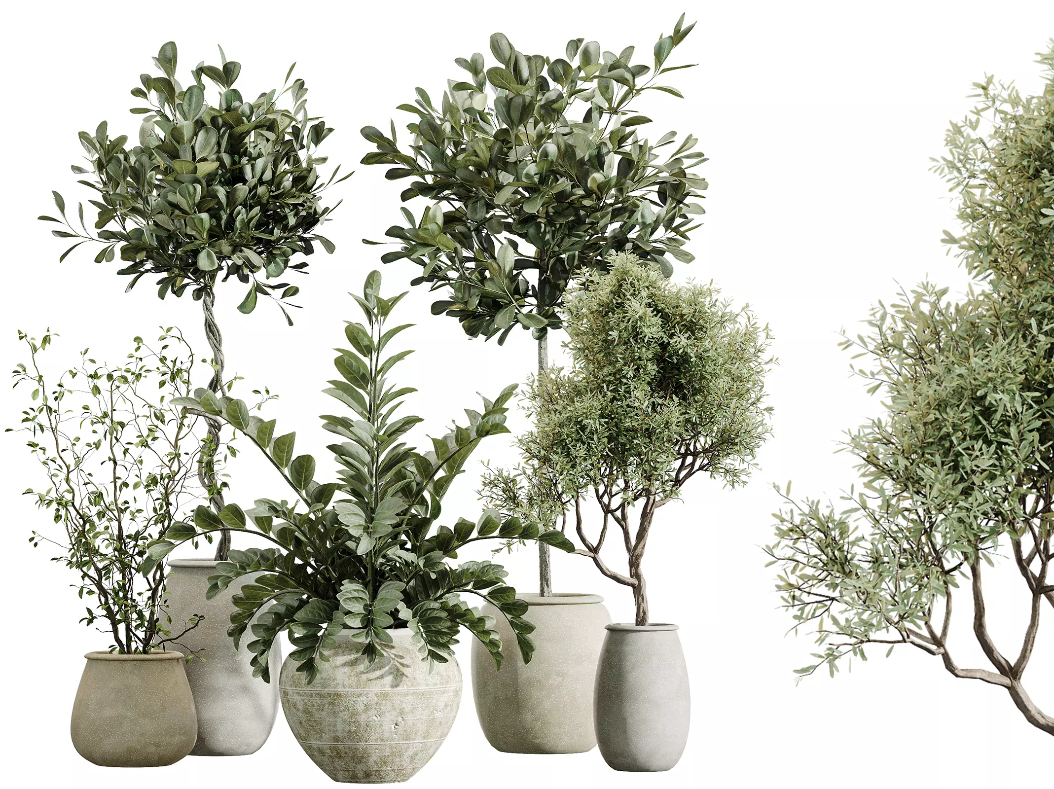 Elevate your interior scenes with this finely detailed collection of premium indoor plants, designed to deliver natural elegance and visual depth to any architectural or artistic environment. Each plant in this set has been modeled with exceptional care, capturing the unique structure and botanical identity of every species—from the sculptural round crowns of the Olive trees to the refined branching of Ficus Microcarpa, the lush upright geometry of Zamioculcas Zamiifolia, and the delicate, airy form of Ficus Marginata.