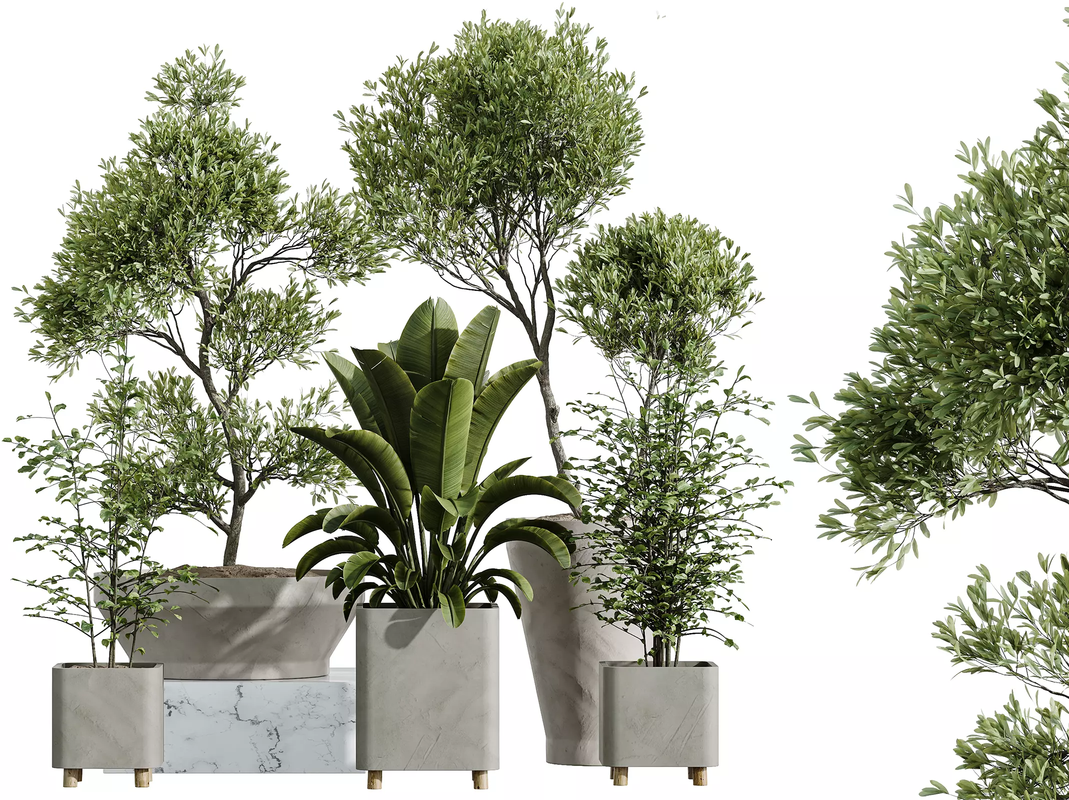 Bring a refined blend of Mediterranean character and contemporary indoor greenery to your scenes with this premium indoor plant set. This collection combines the elegant branching of Alnus Glutinosa (Alder), the calm and timeless presence of Arbequina Olive, and the bold tropical silhouette of Banana Strelitzia Nicolai. Together, these plants create a balanced composition that feels natural, architectural, and perfectly suited for modern interiors.