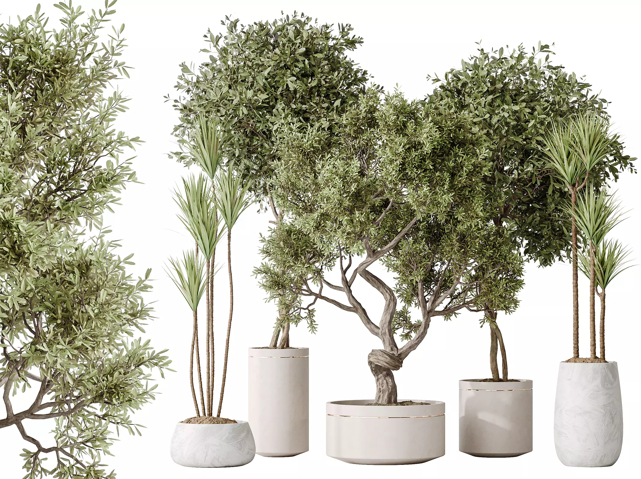 AV Indoor plants set160 Olive and Yucca and Ficus Bonsai Ginseng 3D model