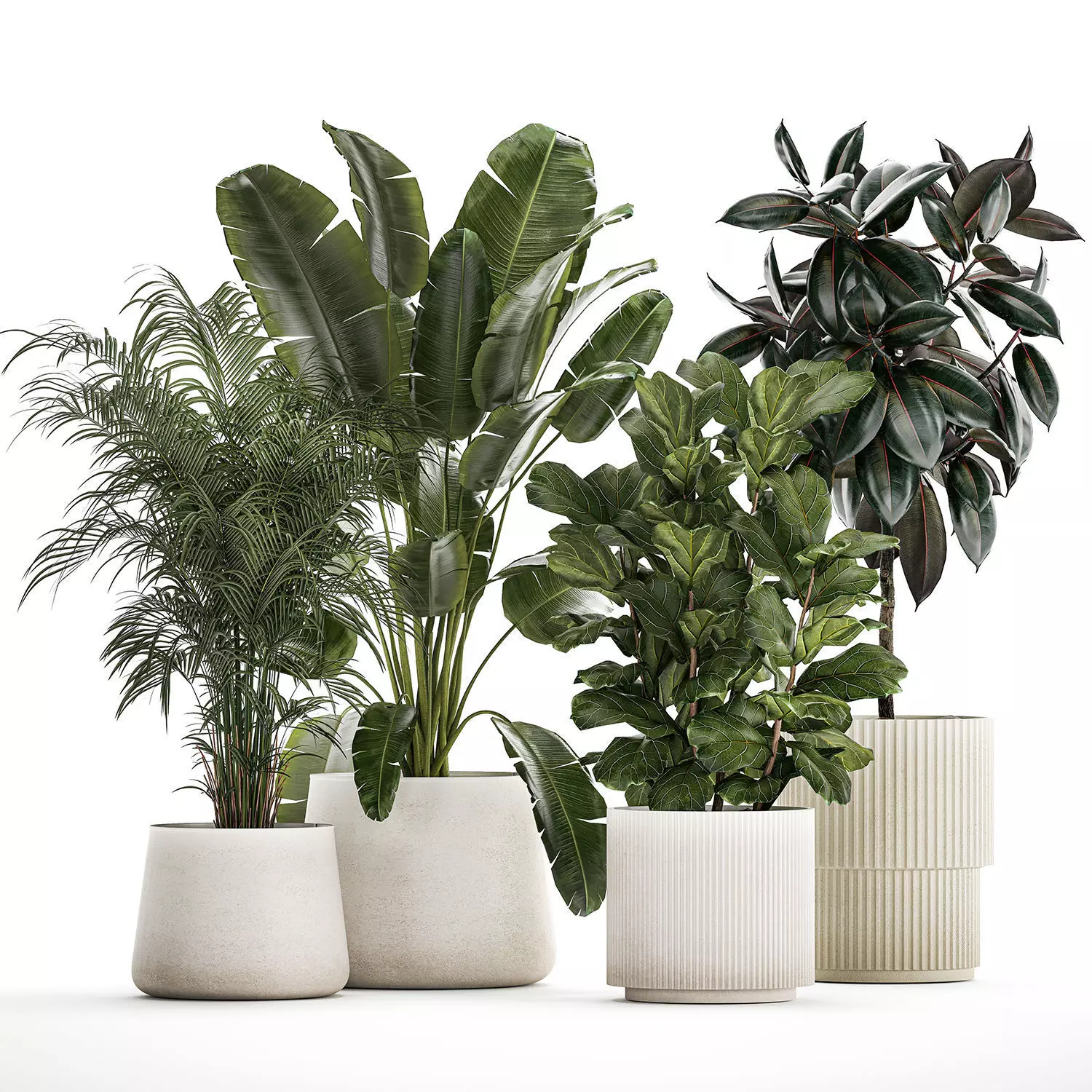 Collection of plants trees in concrete vases and pots for interior and exterior decor. Decorative trees and plants for landscape design.Concrete, pot, flowerpot, outdoor, decorative, stylish, indoor, moderndecorative trees in pots, trees in flowerpots.Trees for street decor, public areas and shopping centersFicus elastica - Ficus rubbery, elastica, Ficus Abidjan, Ficus RobustaFicus lyrata - Lyre-shaped ficus, Ficus LyrataHedyscepe canterburyana – palm treeHowea forsteriana - Howea, KentiaAreca palm tree, decorative, interior, roombanana palm - Banana palmRavenala madagascariensis - RavenalaStrelitzia - Strelitzia