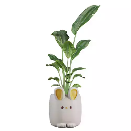 Add a playful and charming element to your interior visualizations with this unique 3D model. This asset features a realistic tropical plant housed in a stylized, animal-shaped pot, making it an excellent choice for children's bedrooms, nurseries, or whimsical modern decor.