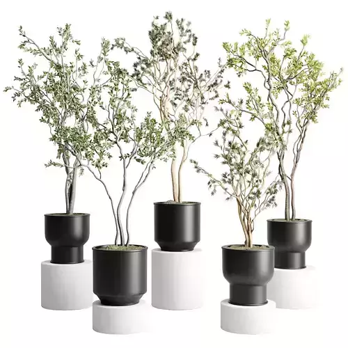 Branch Tree in a plastic pot - indoor plant 579 3D model